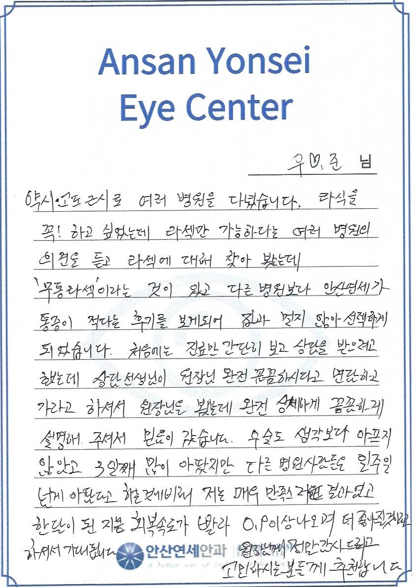 라식을 꼭! 하고 싶었는데 라섹만 가능하다는 여러병원의 의견을 듣고