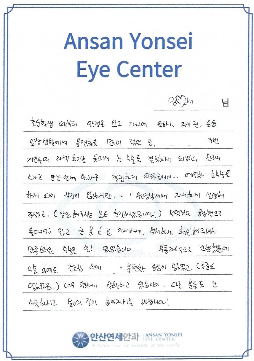 다른 분들도 눈 수술하시고 삶의 질이 높아지시길 바랍니다!