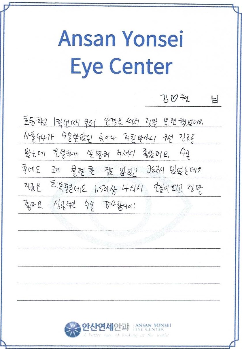 수술 후엗도 크게 불편한 점도 없었고 고도근시였었는데요