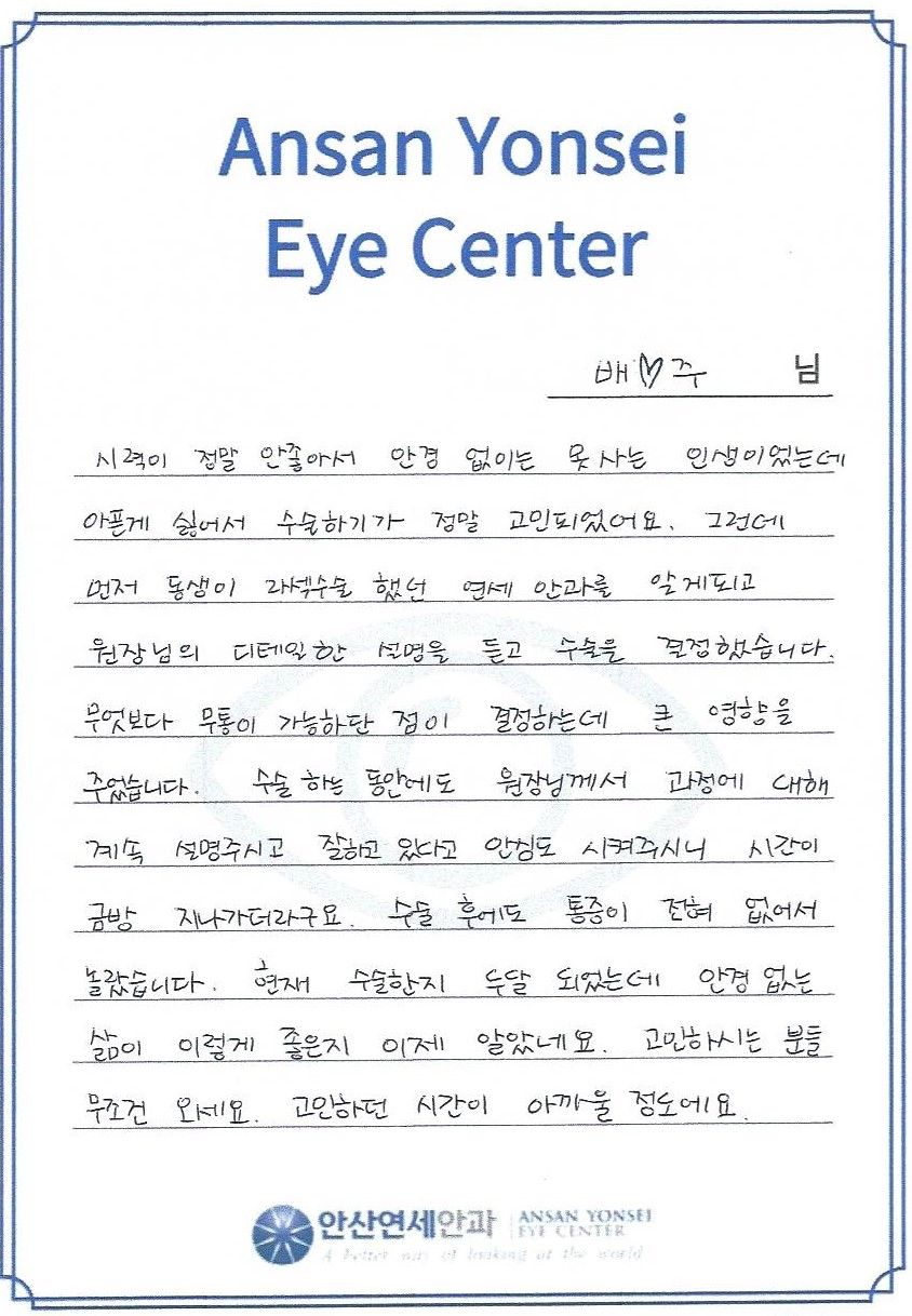 현재 수술한지 두달 되었는데 안경 없는 삶이 이렇게 좋은지 이제 알았네요.
