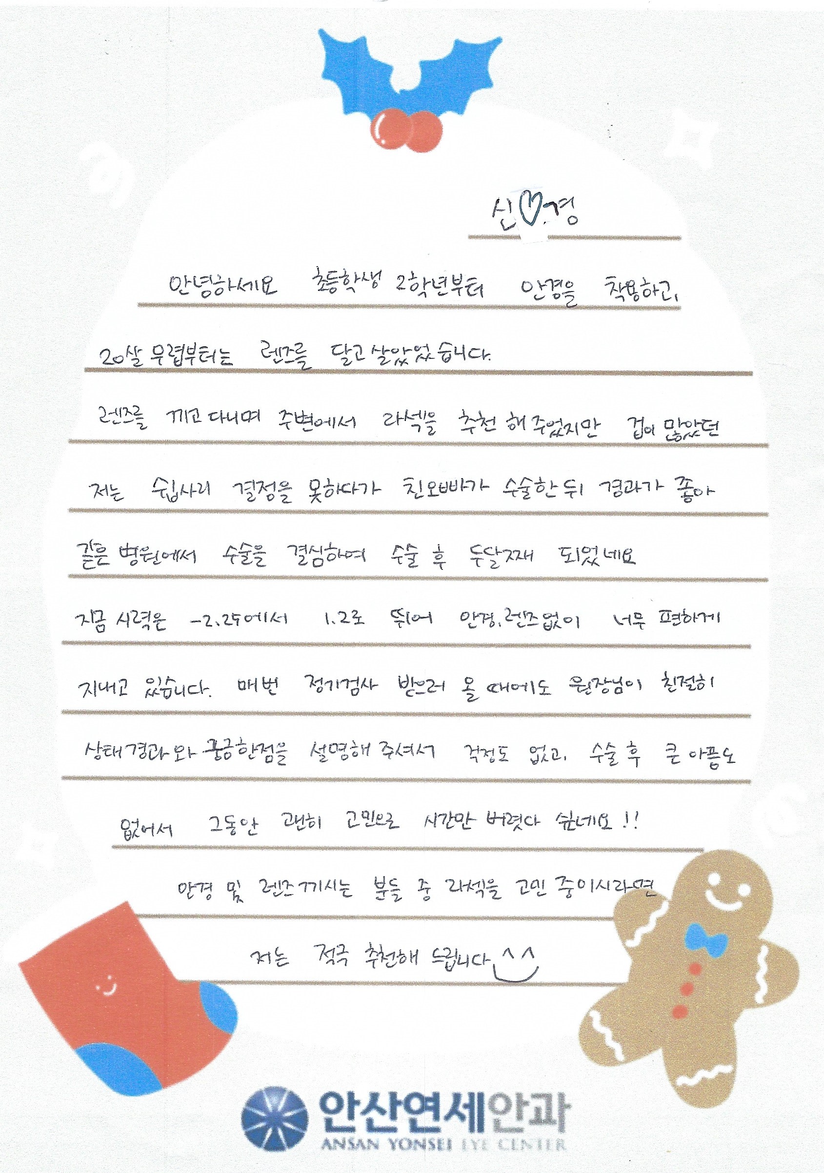 렌즈를 끼고 다니며 주변에서 라섹을 추천해줬지만 겁이 많았던