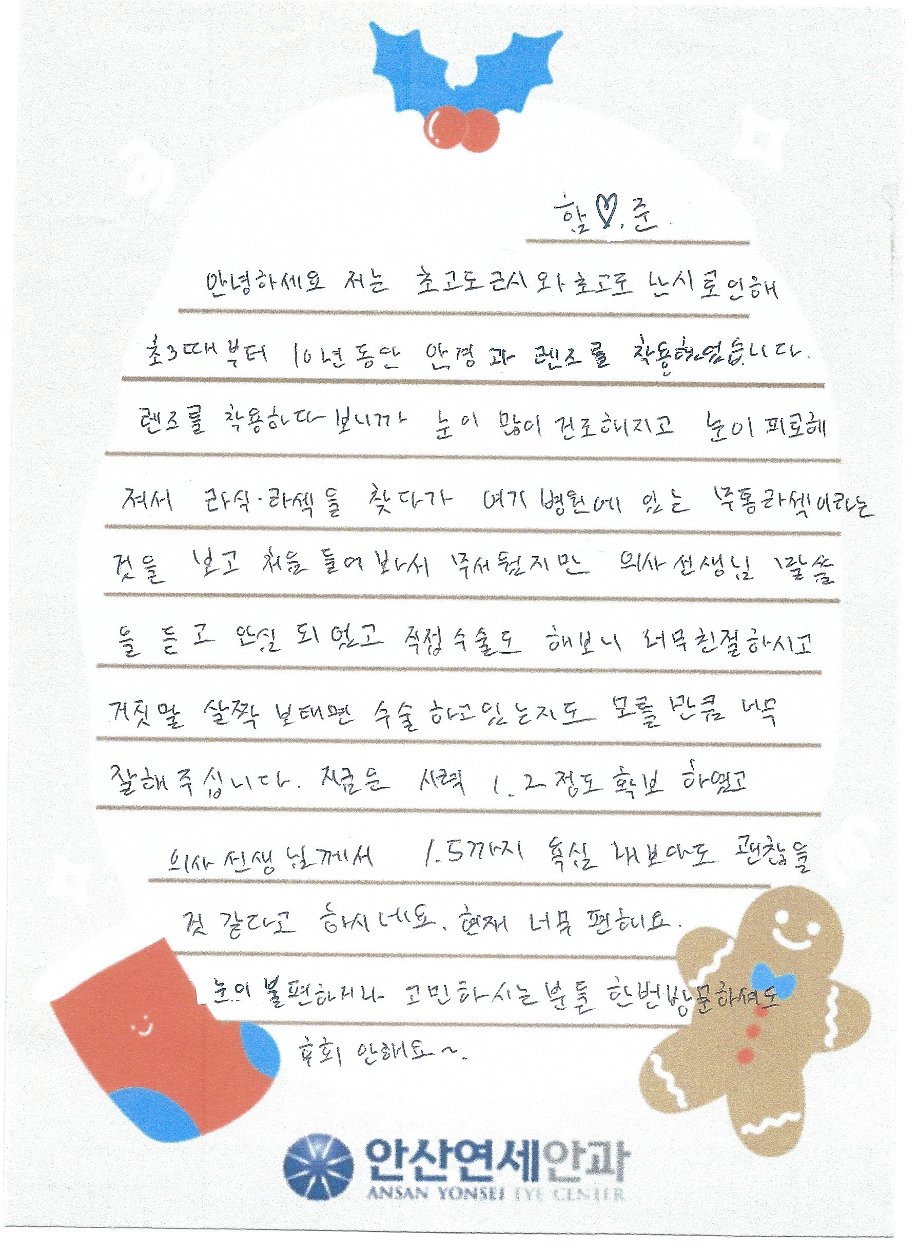 안녕하세요 저는 초고도 근시와 초고도 난시로인해