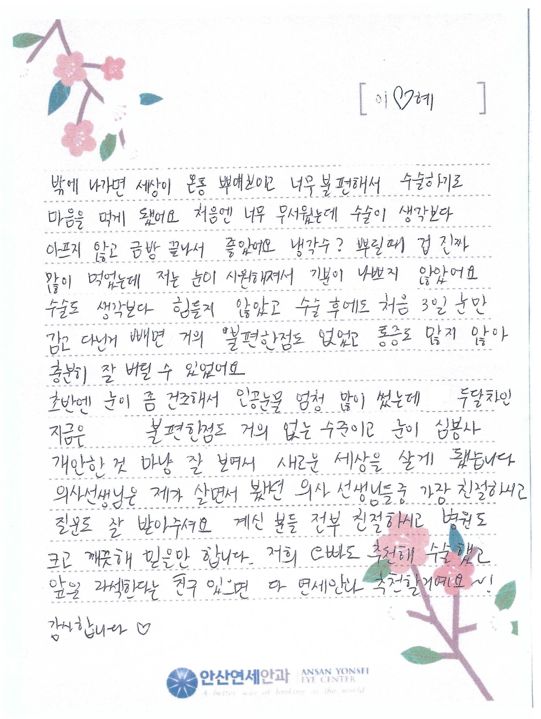 이♡혜님께서 직접 작성해주신 수술 후기입니다.