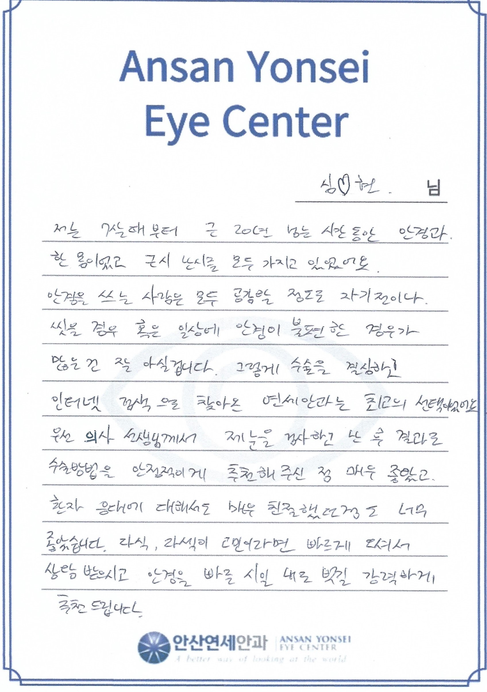 인터넷 검색으로 찾아온 연세안과는 최고의 선택이었어요.