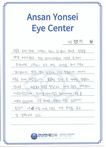 알아보다가 안산연세안과가 제일 적합하여 여기서