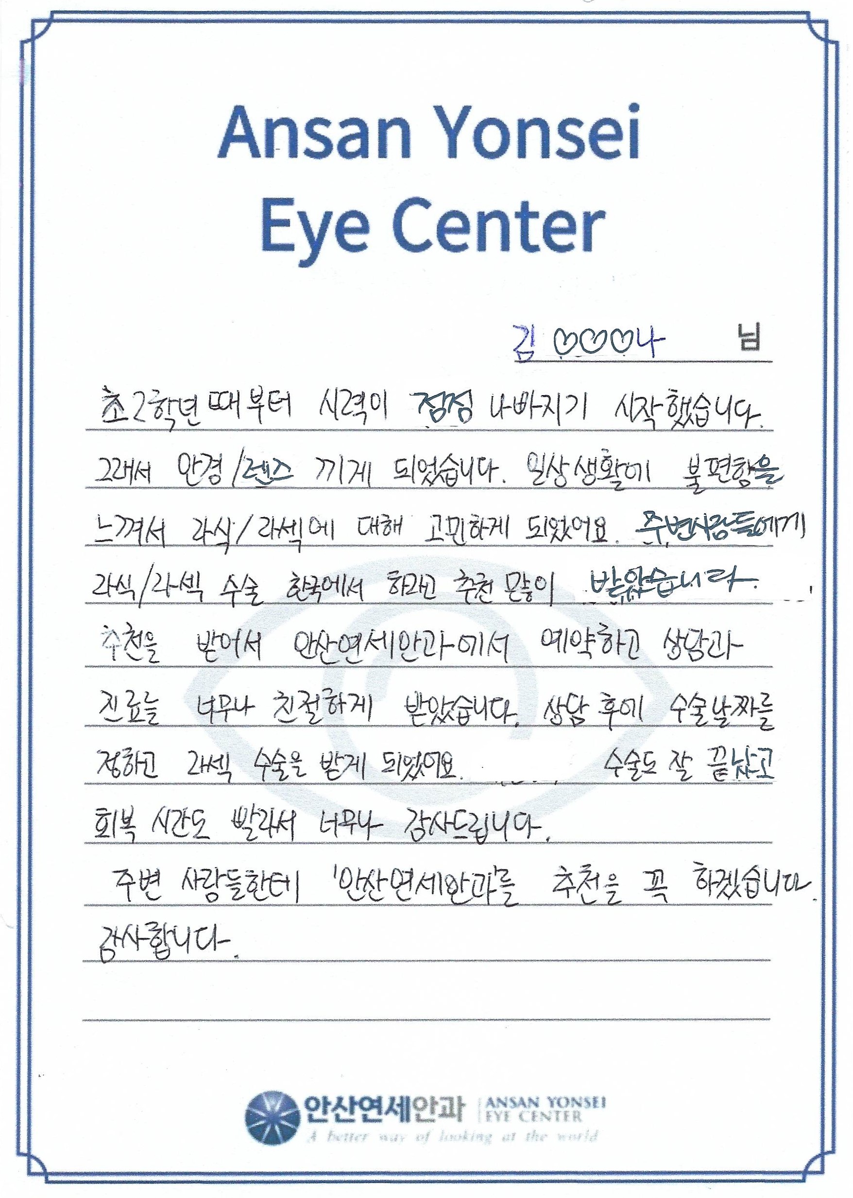 '안산연세안과'를 추천을 꼭 하겠습니다. 감사합니다.