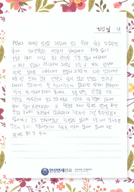 한번 검사를 해주셔서 안심이 되었다. 다른 안과에서
