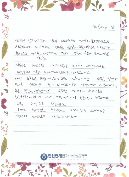 배신하지 않고 다시 연세안과를 찾아왔어요