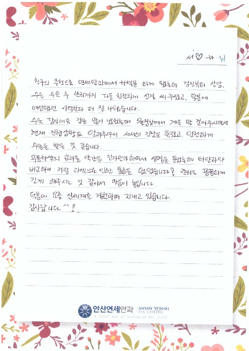 친구의 추천으로 연세 안과에서 라섹을 하게 됐는데