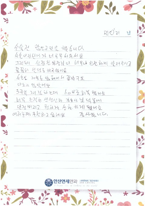 민♡기님께서 직접 작성해주신 수술 후기입니다.