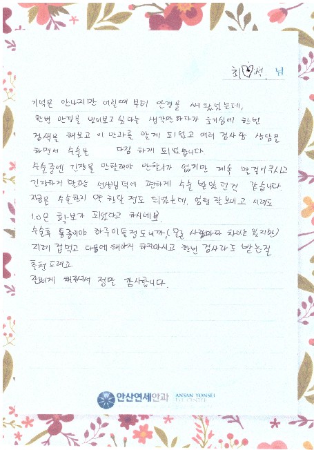 시력도 1.0은 확보가 되었다고 하시네요.