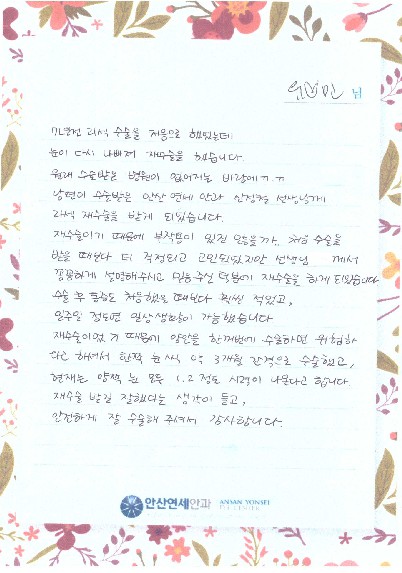 꼼꼼하게 설명해주시고 믿음 주신 덕분에 재수술을 하게 되었습니다.