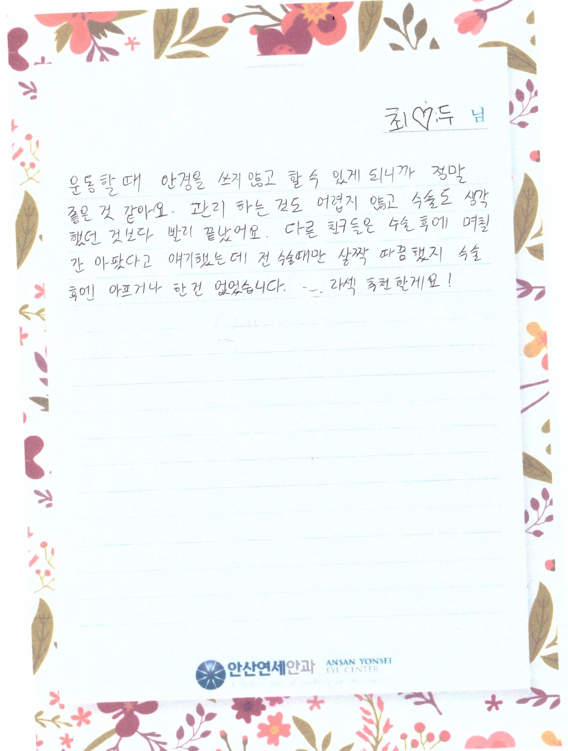최♡두님께서 직접 작성해주신 수술 후기입니다.