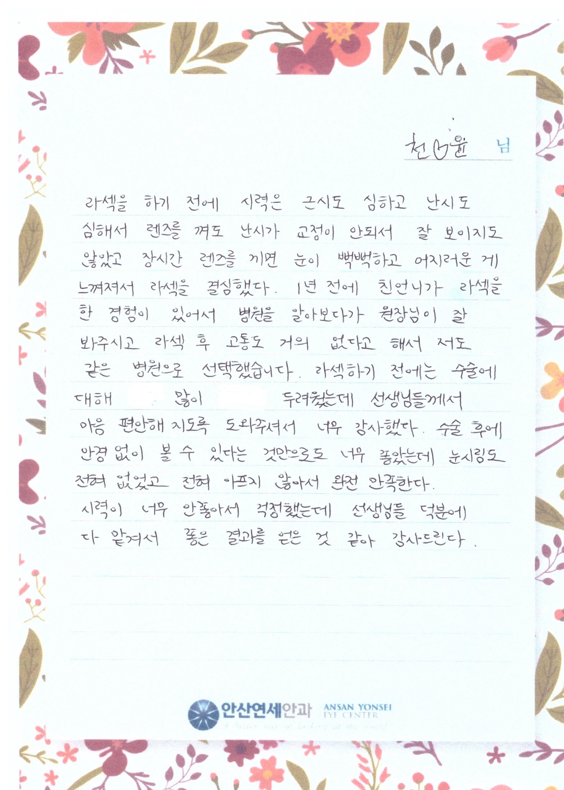 천♡윤님께서 직접 작성해주신 수술 후기입니다.