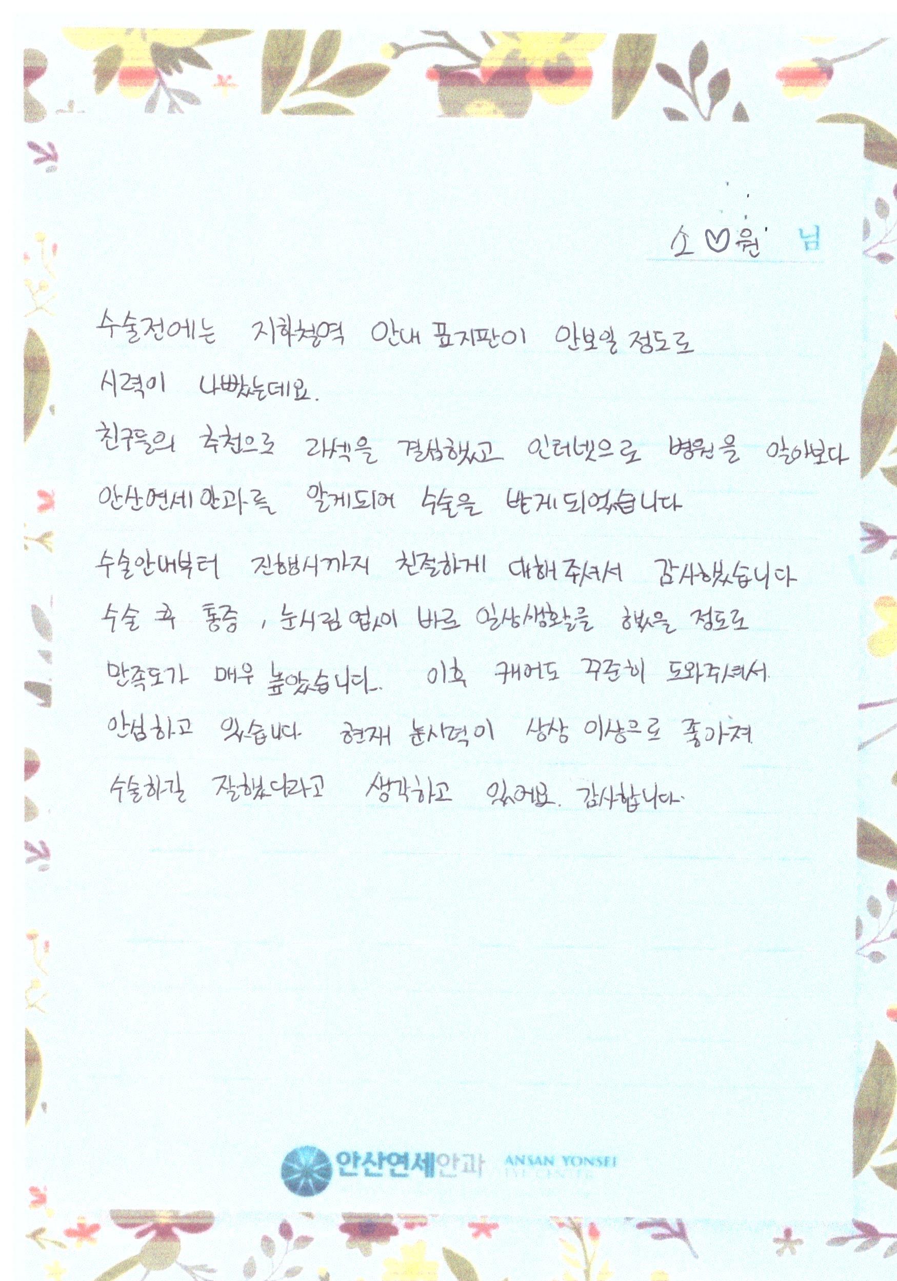 안산연세안과를 알게되어 수술을 받게 되었습니다