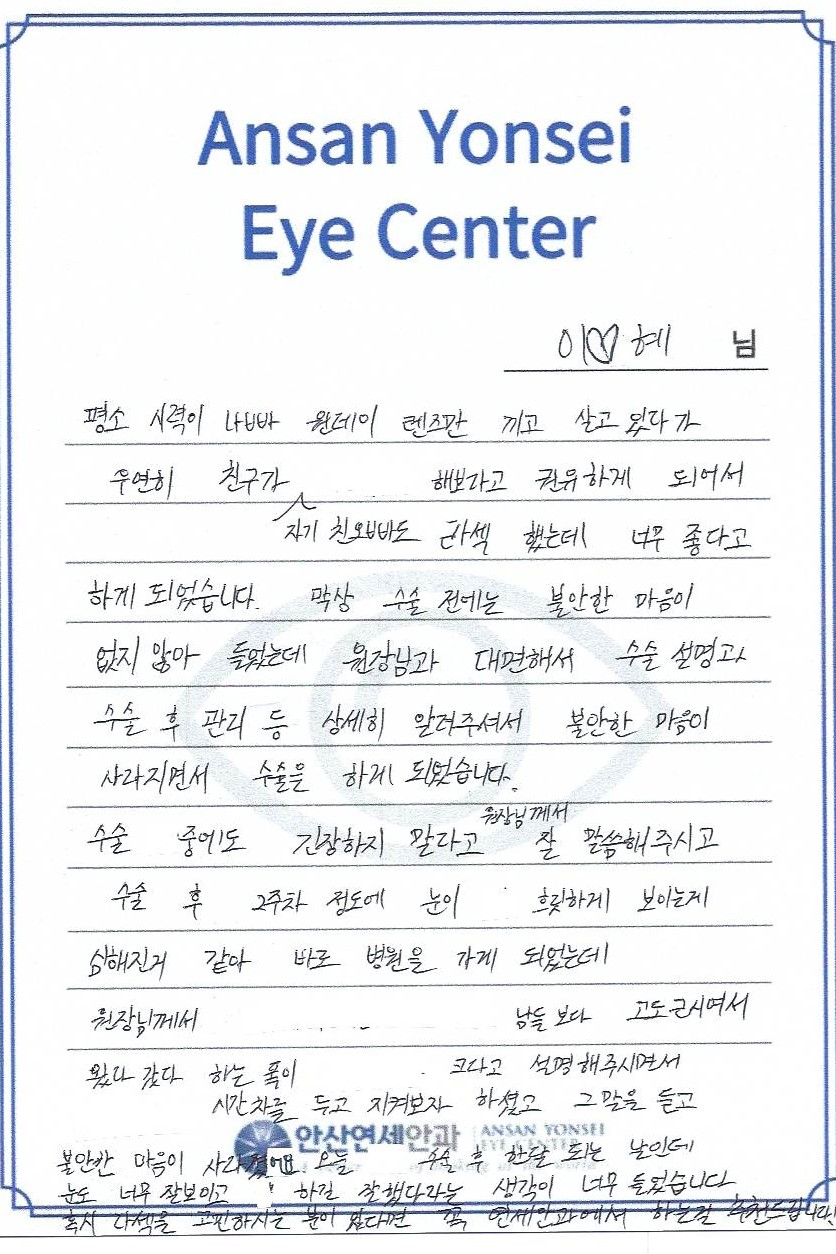 오늘 수술 후 한달 되는 날인데 눈도 너무 잘보이고 하길 잘했다라는 생각이 너무 들었습니다.