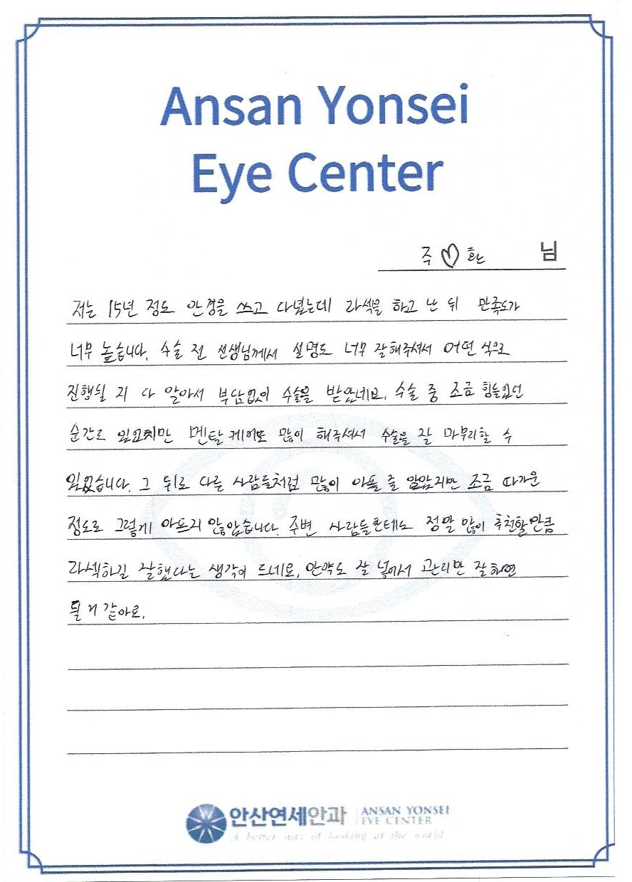 주변 사람들한테도 정말 많이 추천할만큼 라섹하길 잘했다는 생각이 드네요.