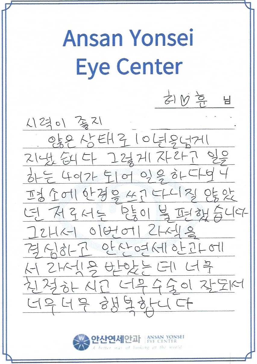 안산연세안과 시력교정센터에서 불편한 안경에서 벗어나세요.