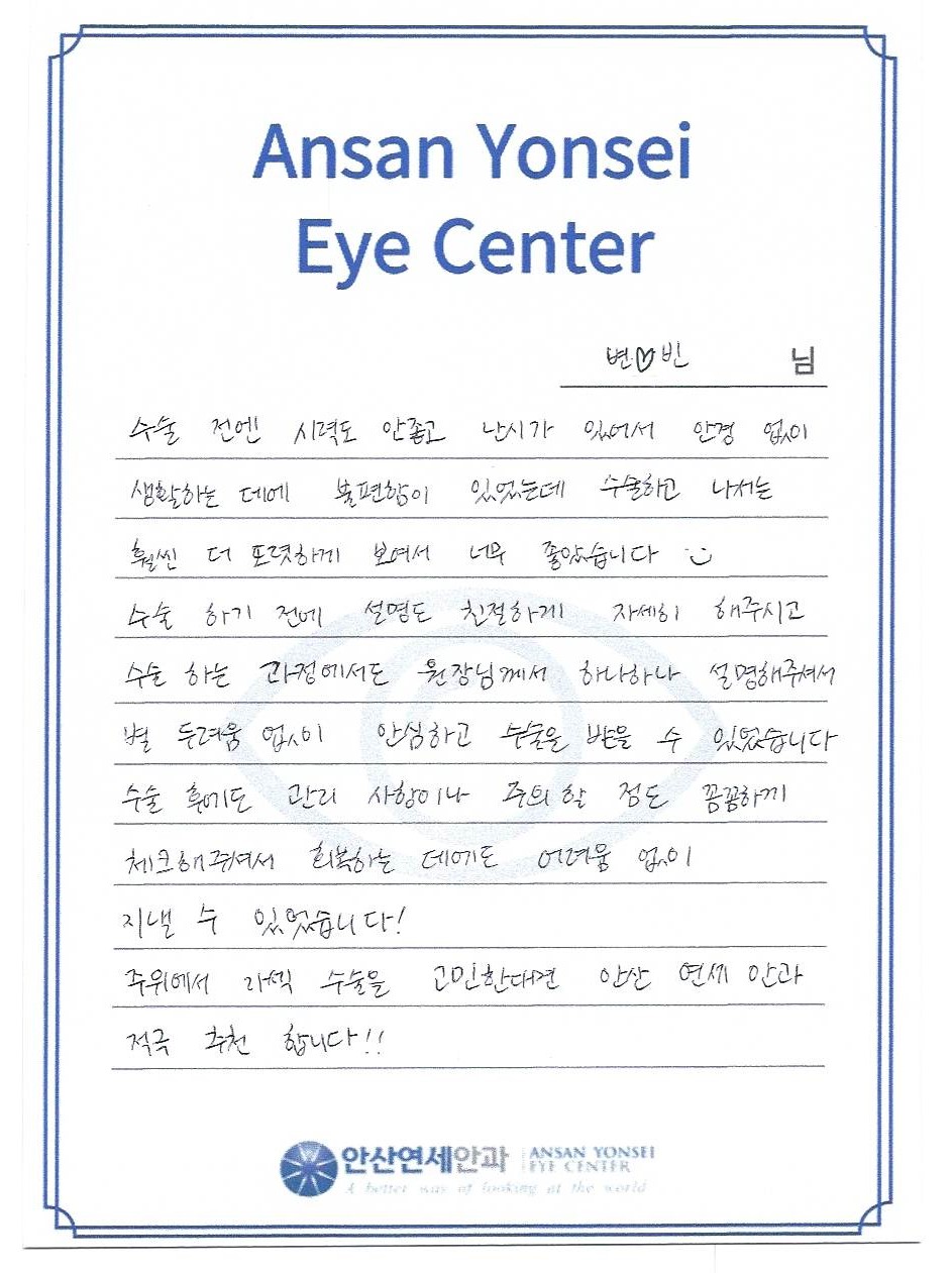수술하고 나서는 훨씬 더 또렷하게 보여서 너무 좋았습니다^_^